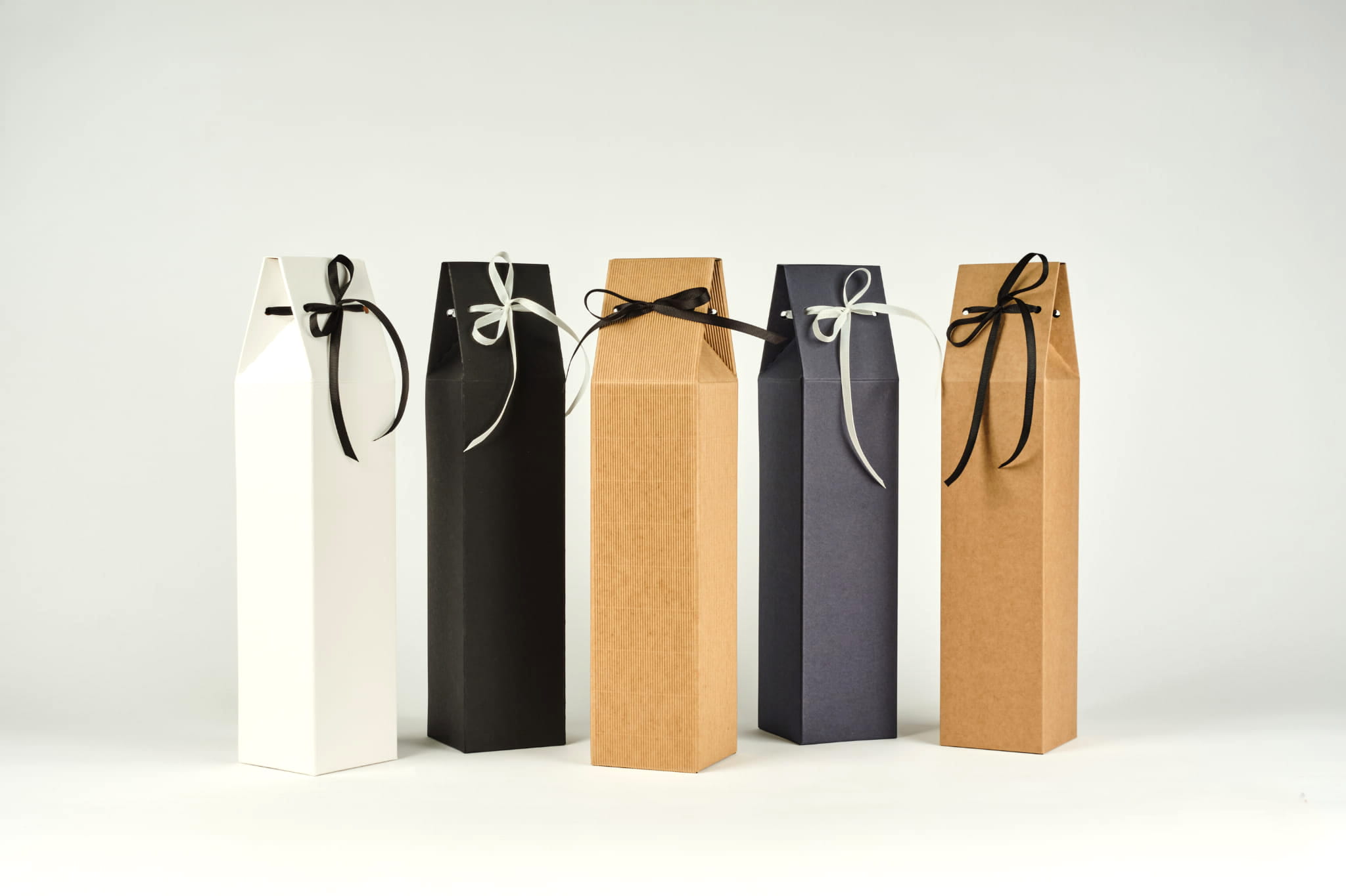 Rozmiar 8x8x27/36, wykonane z wytrzymałej tektury o gramaturze 300gm2. Do pudełka dołączona jest wstążka rypsowa 0,5cm (losowo kolor biały, krem lub czarny). Pudełko pasuje do większości obecnych na rynku butelek z winem. Dużym atutem jest to, że może być wielokrotnie używane bez uszczerbku na jego wyglądzie, jakości i użyteczności. Wymaga samodzielnego sklejenia.