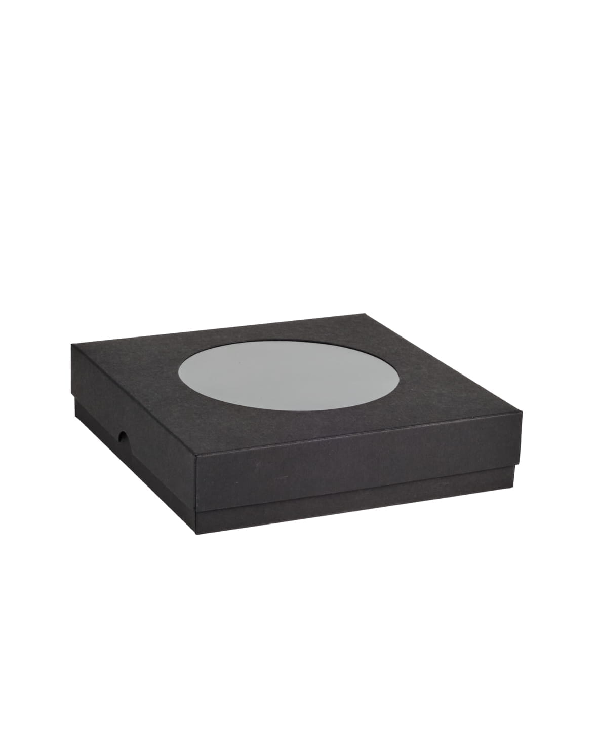 Pudełko z okienkiem okrągłym wysokie Kwadrat, czarny, 15 x 15 x 3,5cm