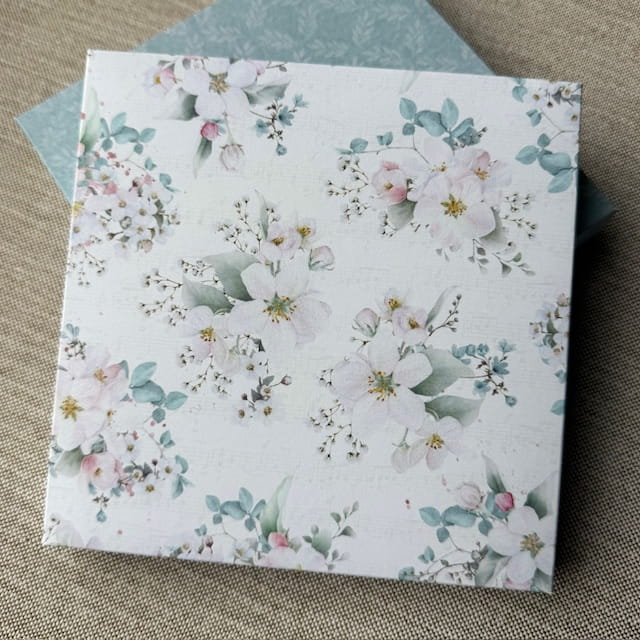 UWAGA: ten produkt jest częścią koncepcji, która pozwala na swobodne łączenie ze sobą pudełek jednobarwnych z tymi z nadrukiem, ale i z nadrukowanymi. Pozwala na łatwe tworzenie eleganckich pudełek, którym niewiele już trzeba do dekoracji. Papier użyty do jego wycięcia jest dwustronnie nadrukowany i czasem zdarza się, że druga strona nie pasuje swoim wzorem do wierzchu pudełka (np. nadruk w karty, napisy), jednak do każdej części dajemy docięty kwadrat z gładkim wzorem, który można nakleić wewnątrz, co dodatkowo usztywni pudełko.