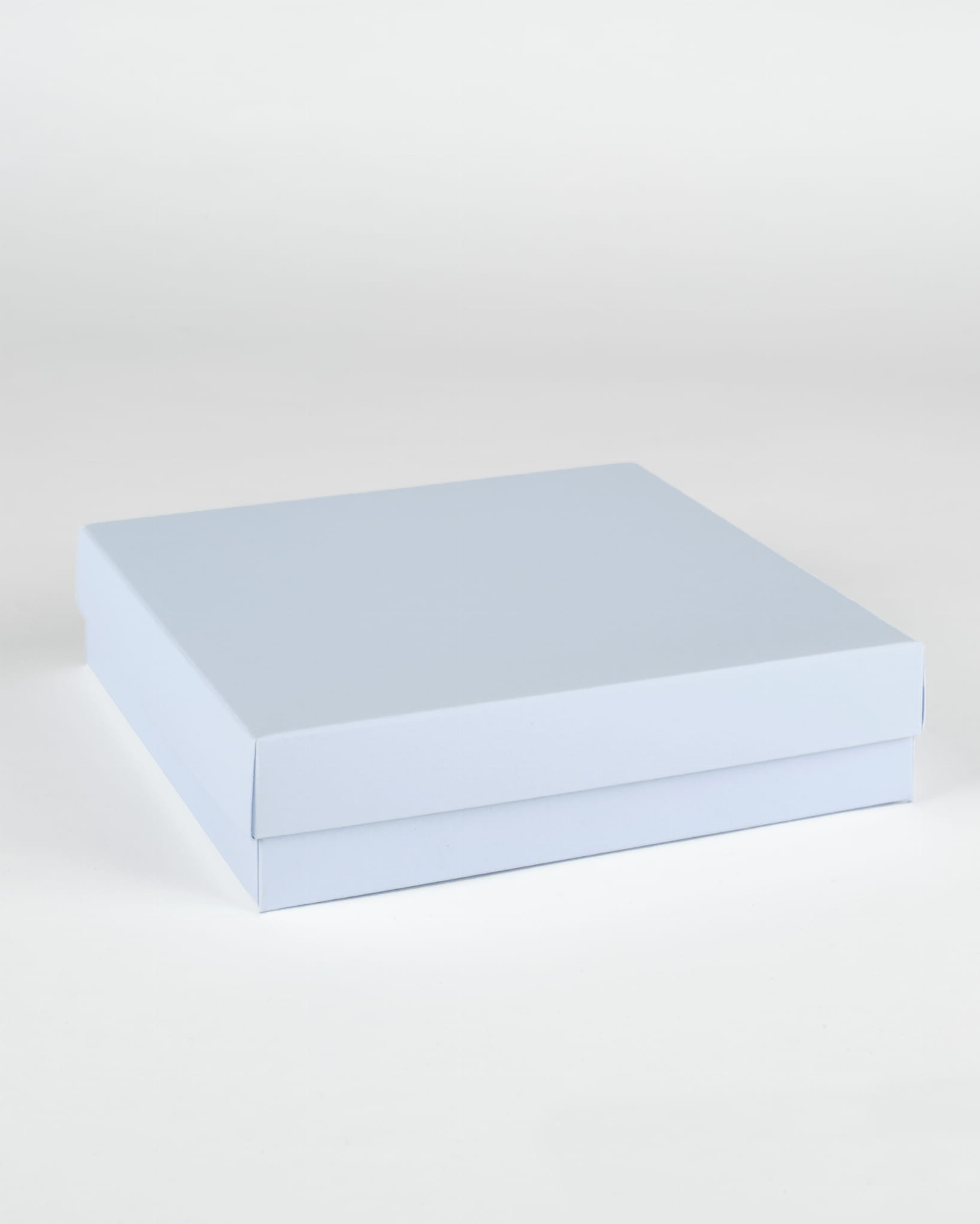 Rozmiar 15x15x3,5cm, wykonane z błękitnego papieru offset o gramaturze 300gm2. Pudełko składa się z dwóch części wieczka i spodu. Obie części są bigowane co ułatwia składanie. Wieczko jest niższe od spodu o 0,5cm co ułatwia swobodne otwieranie. Idealnie nadaje się do ręcznie zdobionych kartek okolicznościowych, zaproszeń, podziękowań. Sprawdzi się również jako opakowanie do ręcznie robionej biżuterii itp. Pudełko nadaje się do zdobienia różnymi materiałami: mediami, papierami do scrapbookingu.