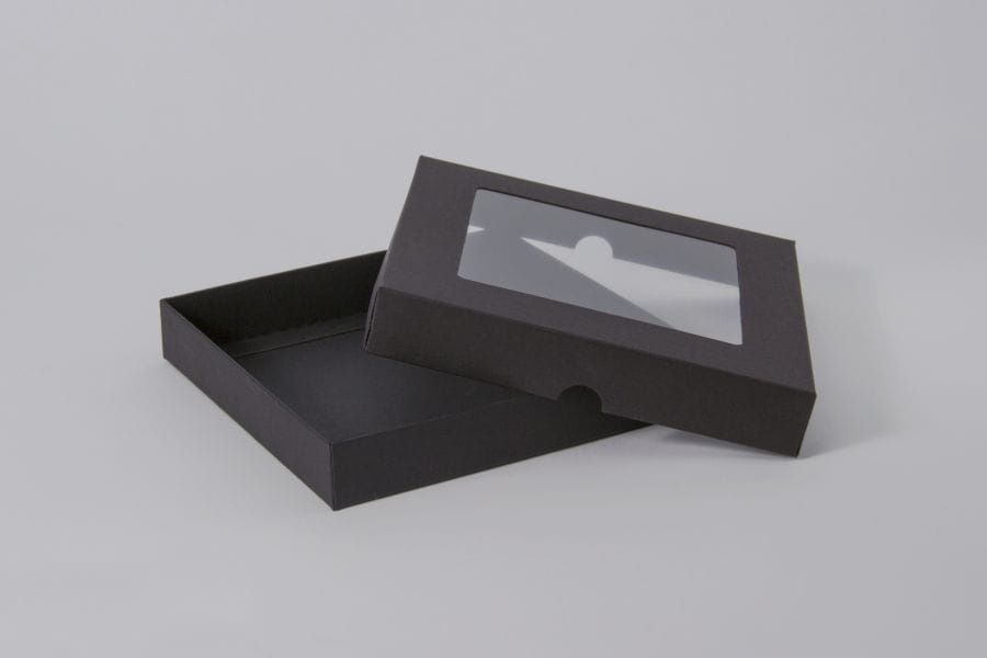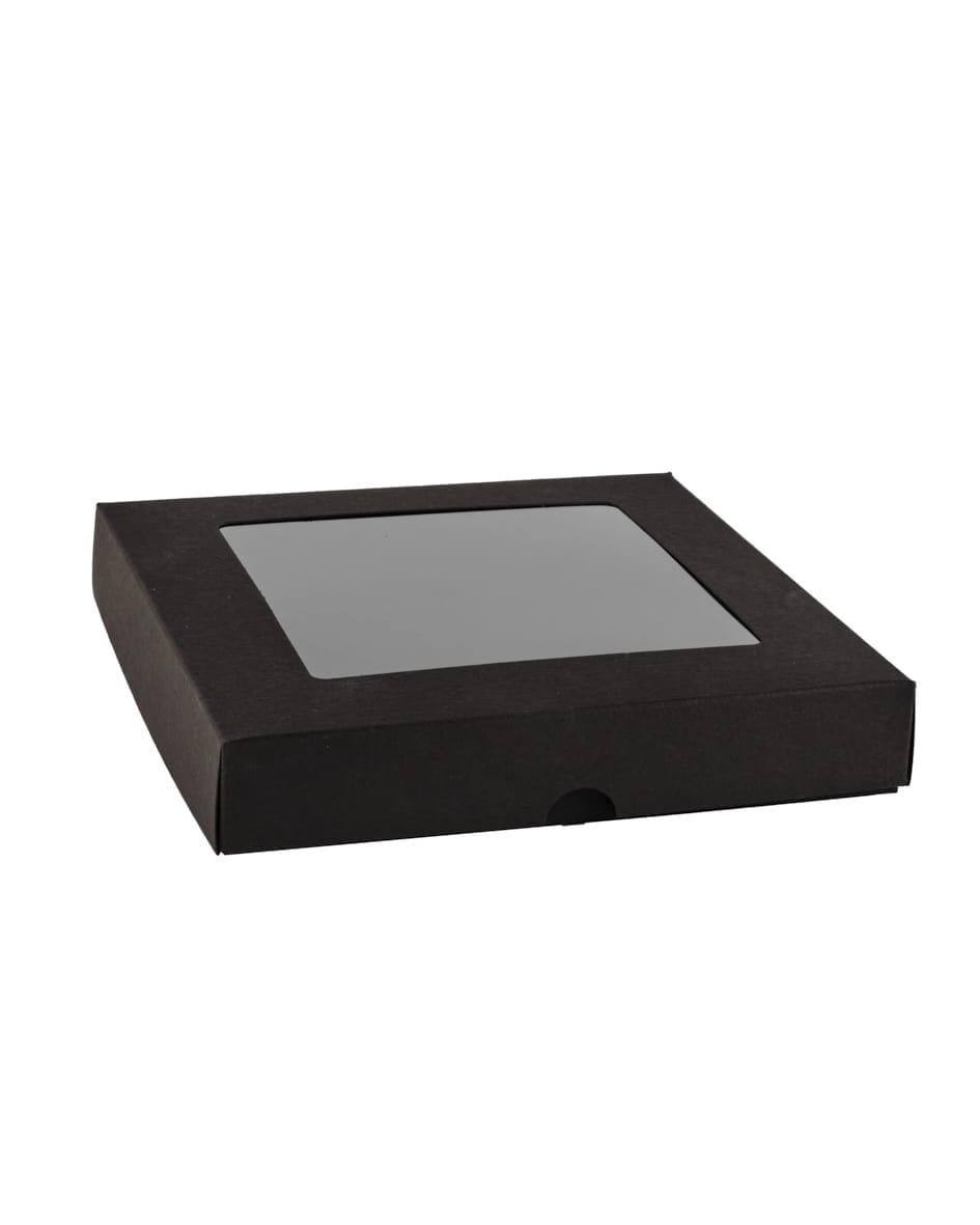 Pudełko z okienkiem kwadratowym niskie Kwadrat, czarny, 15 x 15 x 2,5cm
