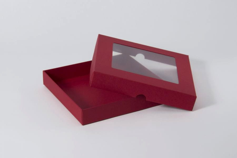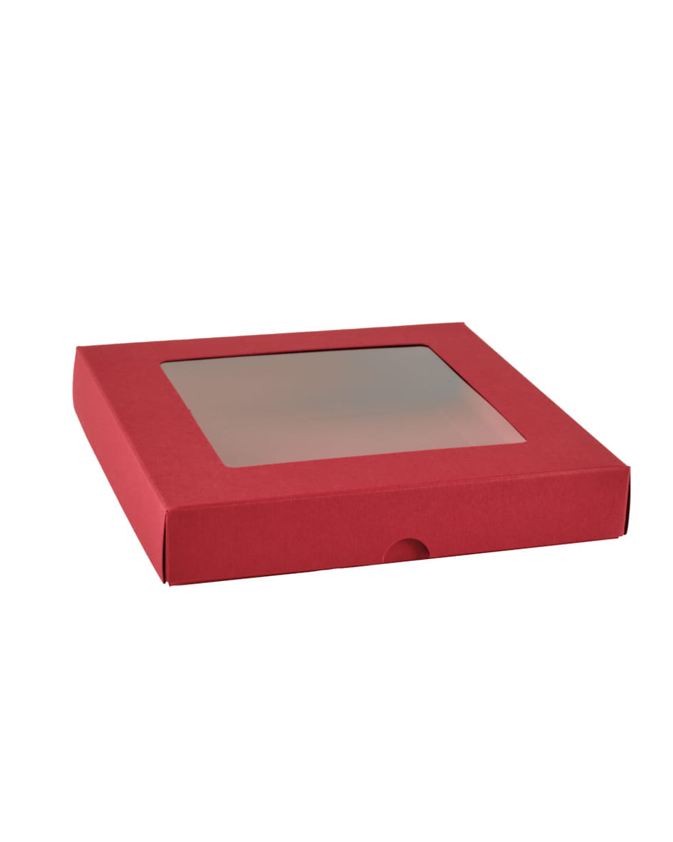 Pudełko z okienkiem kwadratowym niskie Kwadrat, czerwony, 15 x 15 x 2,5cm