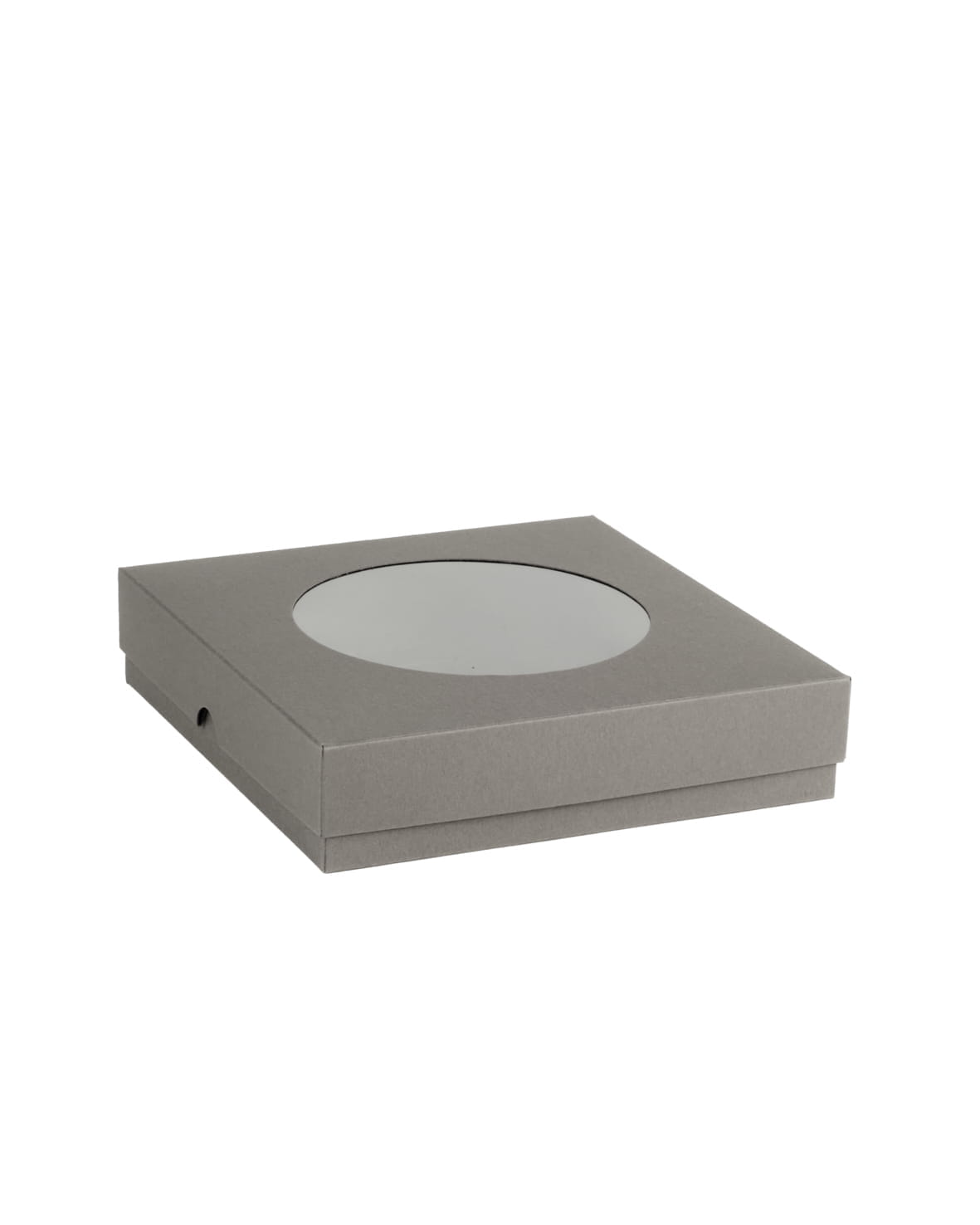 Pudełko z okienkiem okrągłym wysokie Kwadrat, szary, 15 x 15 x 3,5cm