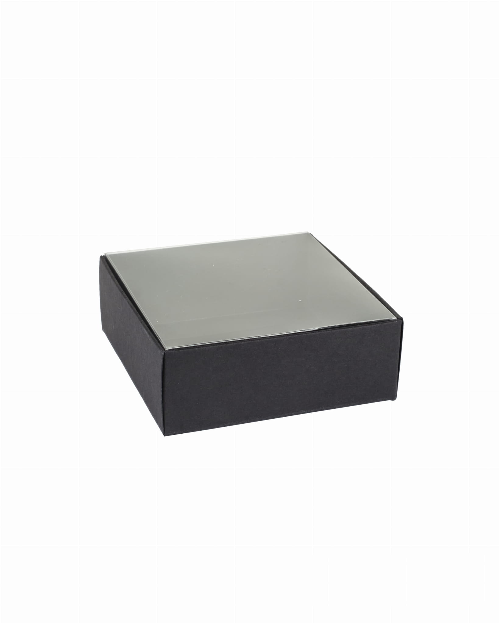 Pudełko z pełną szybką Kwadrat, czarny, 8 x 8 x 3cm