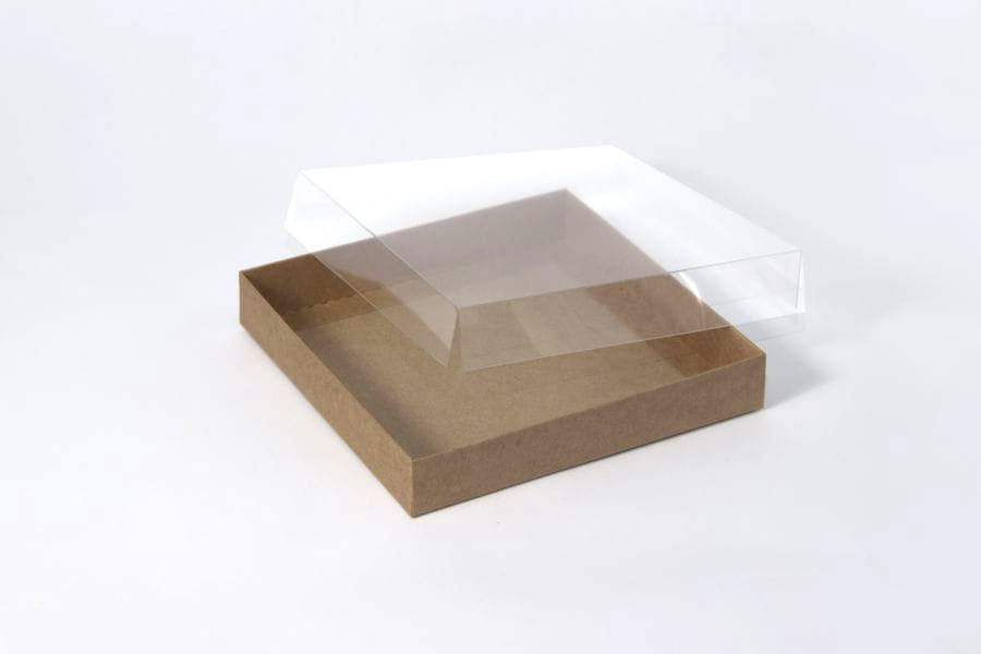 Pudełko z pełną szybką Kwadrat, kraft, 15 x 15 x 2,5cm