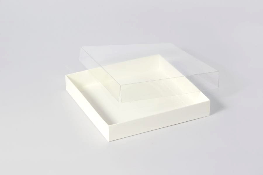 Pudełko z pełną szybką Kwadrat, kremowy, 15 x 15 x 2,5cm (nowy odcień)